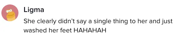 They wrote: "She clearly didn't say a single thing to her and just washed her feet HAHAHAH."