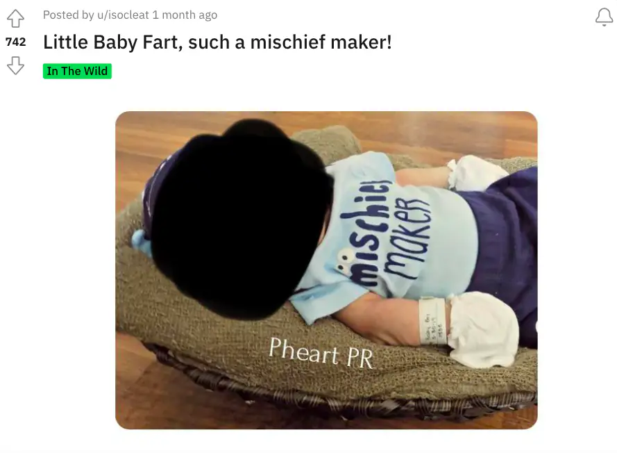 "Little Baby Fart, such a mischief-maker," the original poster said, and the image revealed that the newborn baby was called Pheart.