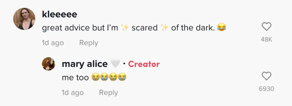 "Great advice but I'm scared of the dark," said one user, while another hailed Mary Alice as "smart" and thanked her for sharing the valuable tip. Another follower emphasized the importance of intuition, stating, "always trust your gut, I swear it's always right."