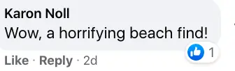 Karon Noll wrote: "Wow, a horrifying beach find!"