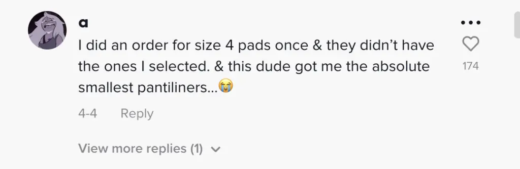 One user wrote: "I did an order for size 4 pads once & they didn’t have the ones I selected & this dude got me the absolute smallest pantiliners…"