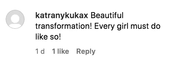 A third commented: "I will never get over your transformation pics, you are so stunning and cool," while a fourth remarked: "Wow... it’s amazing how even your whole vibe changed from then to now. I respect people who know what they want out of this life! You are amazing."