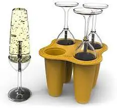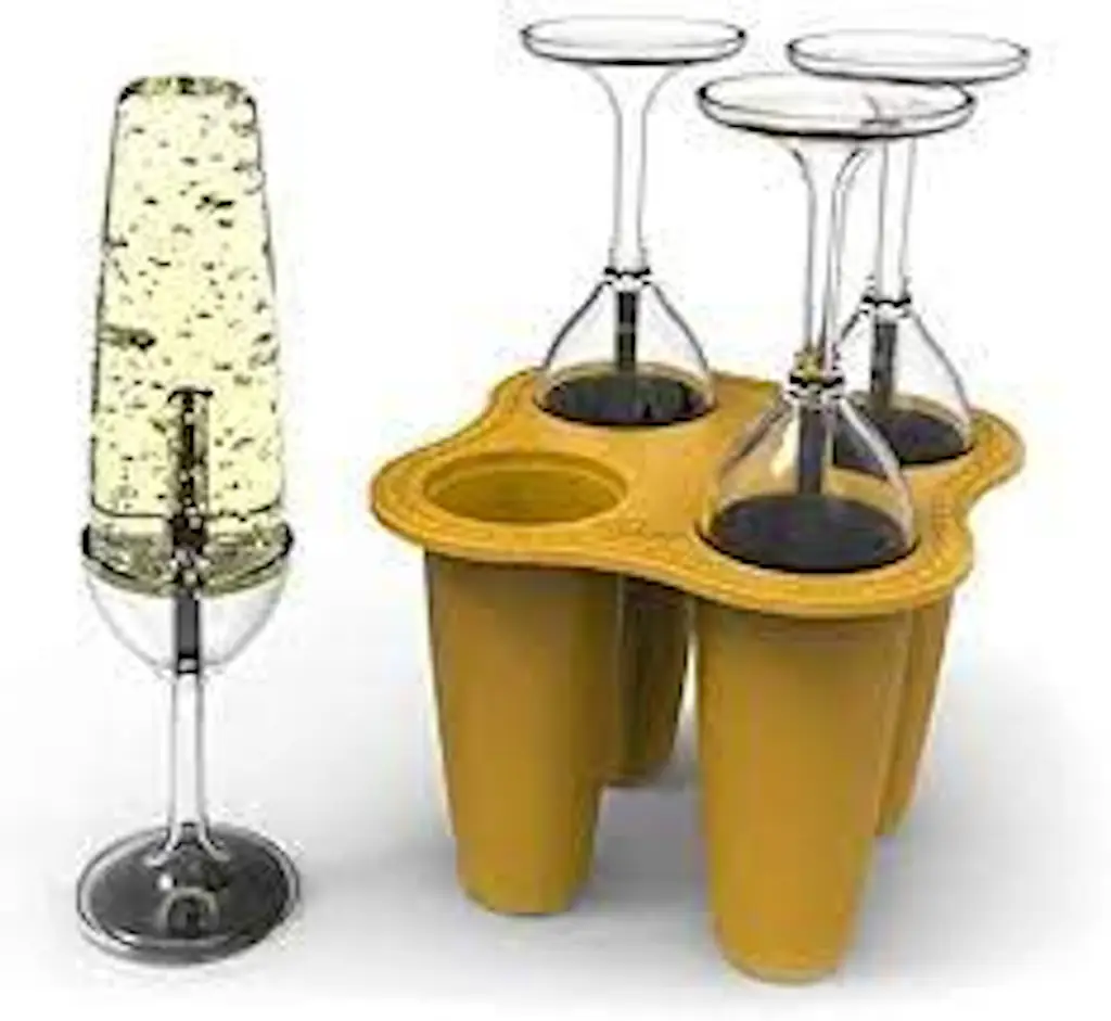 "Ice lolly mould that produces frozen treats resembling a filled champagne glass.
