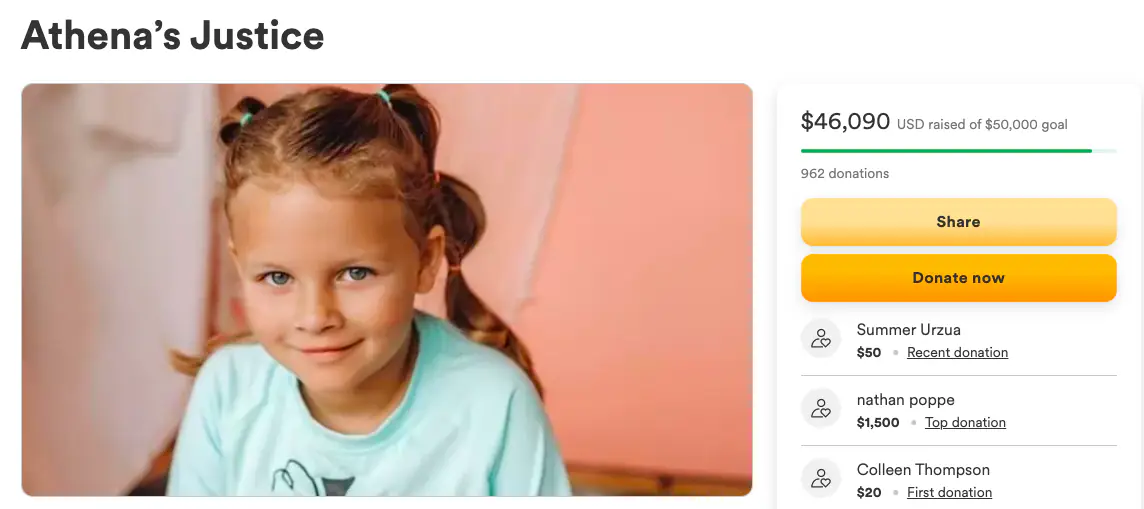 A GoFundMe page has been set up in order to support Athena's grieving family, and at the time of writing has raised $46,000.