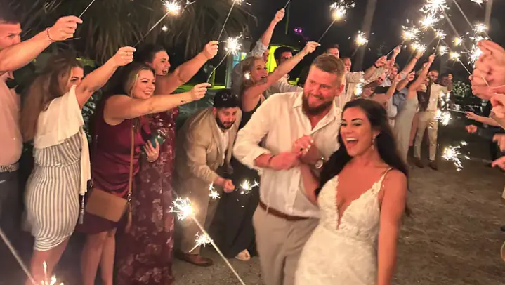 Samantha "Sam" Hutchinson, 34, and her new husband Aric Hutchinson, 36, tied the knot on April 28, and they left their wedding reception smiling from ear to ear.