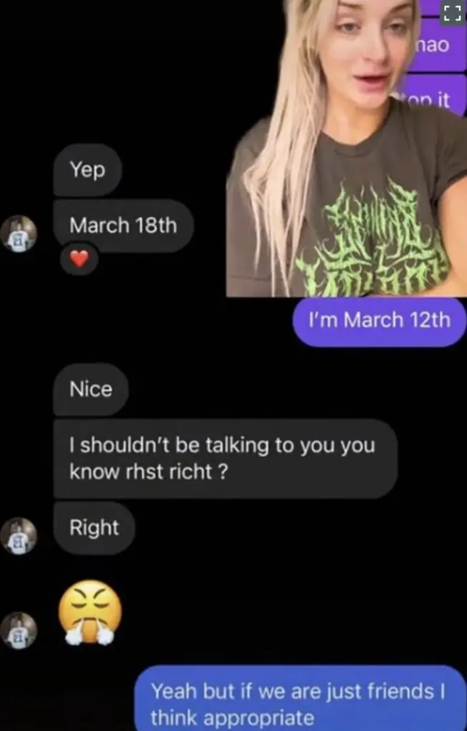 One message reads "That body of yours is absurd", with another adding: "Watching your a** jiggle on that table will permantently scar me but otherwise I'm amazing". Any further context behind the alleged messages was not provided.