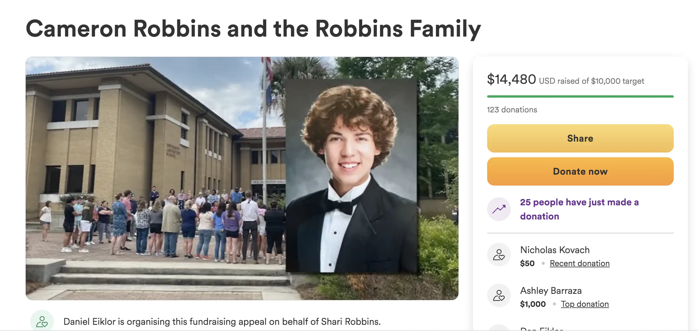 The donation page read: "Cameron's mother, Shari is an indescribably amazing teacher and her kindness and devotion has helped countless children throughout her career. Please donate as you can and share this fundraiser to support her and her family through this unimaginable situation."