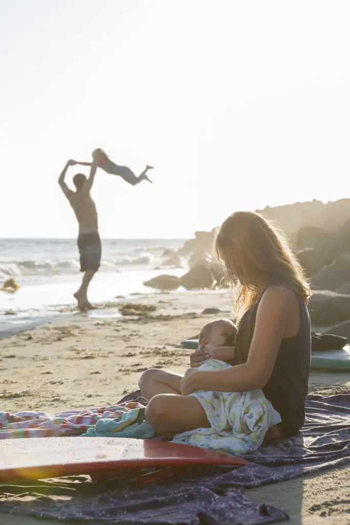 Tucked away under a beach umbrella, Lomax, who is from Maryland, decided to breastfeed her baby before her fiancé and his parents arrived to join the pair.