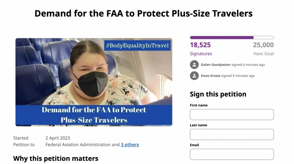 In April the influencer started a petition titled 'Demand for the FAA to Protect Plus-Sized Customers,' in the hopes that airplanes would put an end to their discriminatory rules.