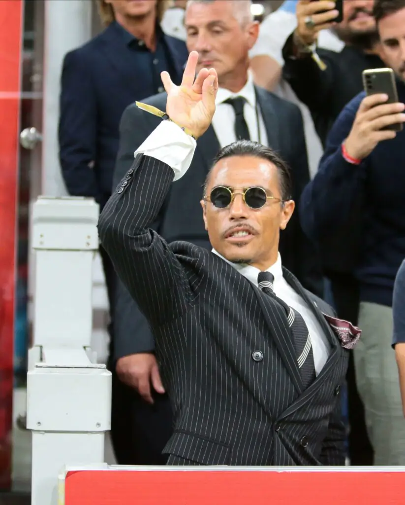 Salt Bae - real name Nusret Gökçe - found fame after going viral with his unique and theatrical way of salting meat, by rolling the grains down his forearm.