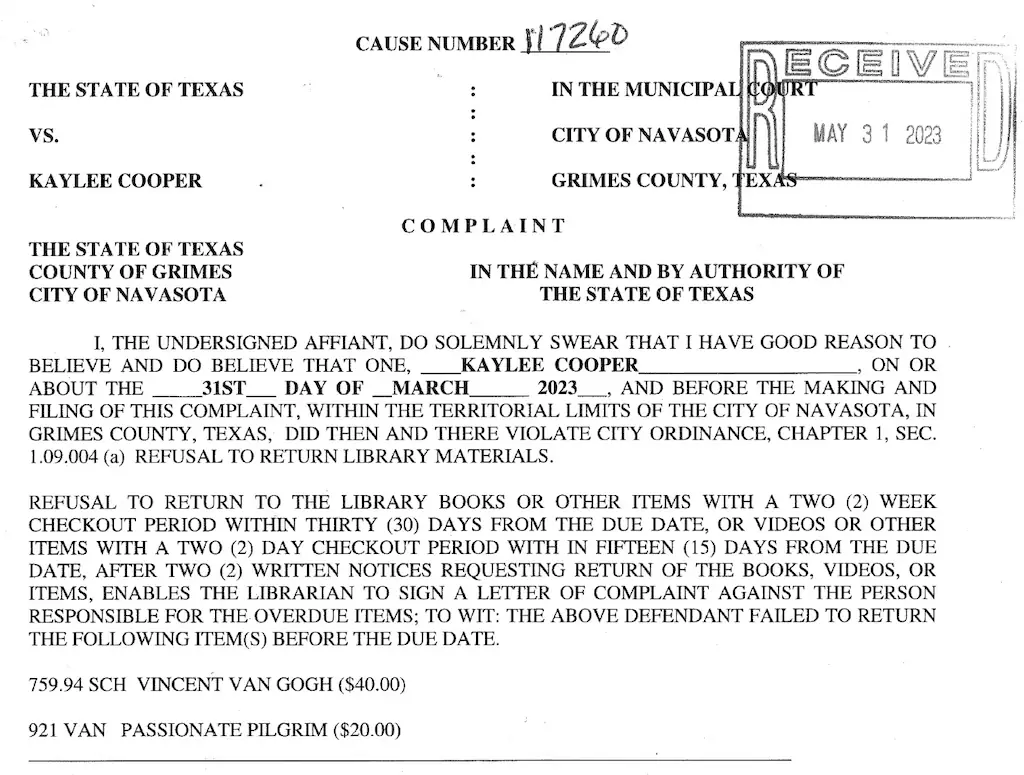Kaylee Morgan, a resident of Grimes County, Texas, found herself entangled in a legal ordeal stemming from two books she borrowed from Navasota Public Library in March 2023, which reportedly centered on the life and works of Vincent van Gogh.