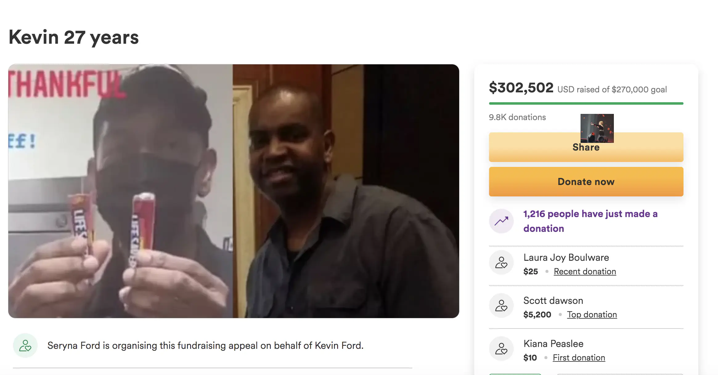 Ford's daughters set up a GoFundMe page for their dad and sought to raise about $200. Instead, they received a whooping $300,000 in donations as the number continues to rise.