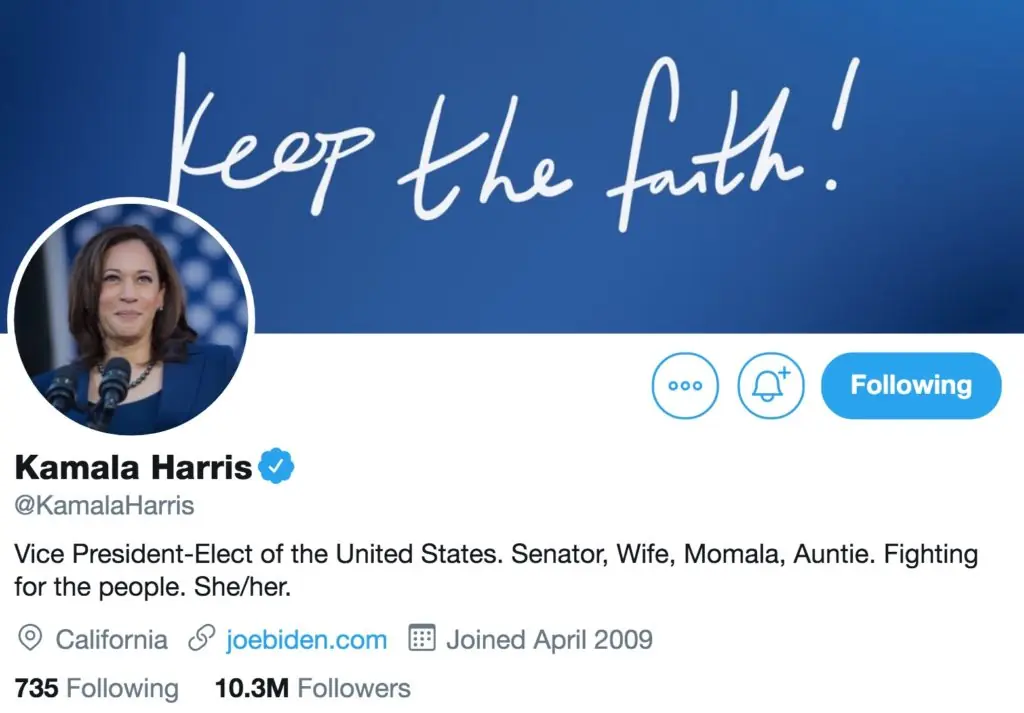 With this news, Biden's running mate, Kamala Harris, became the projected vice president-elect (and she's already updated her Twitter profile).