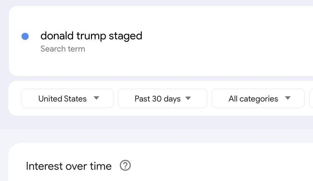 And on Google, searches for 'Donald Trump Staged' have skyrocketed in the last two days, with more and more people using the platform to search for terms like "staged shooting" and "Donald Trump fake".