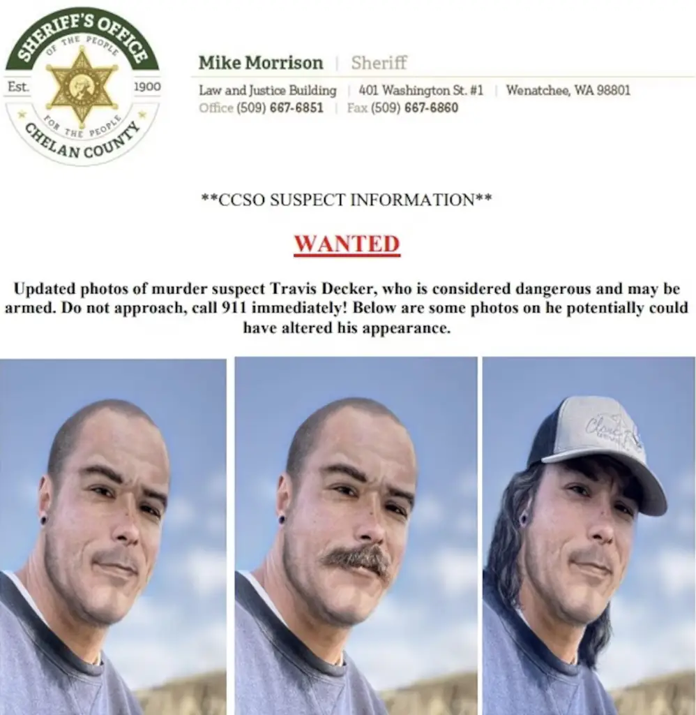 Authorities urge the public not to approach Decker if spotted. He is wanted on three counts of first-degree murder and three counts of first-degree kidnapping, and is considered armed and dangerous.