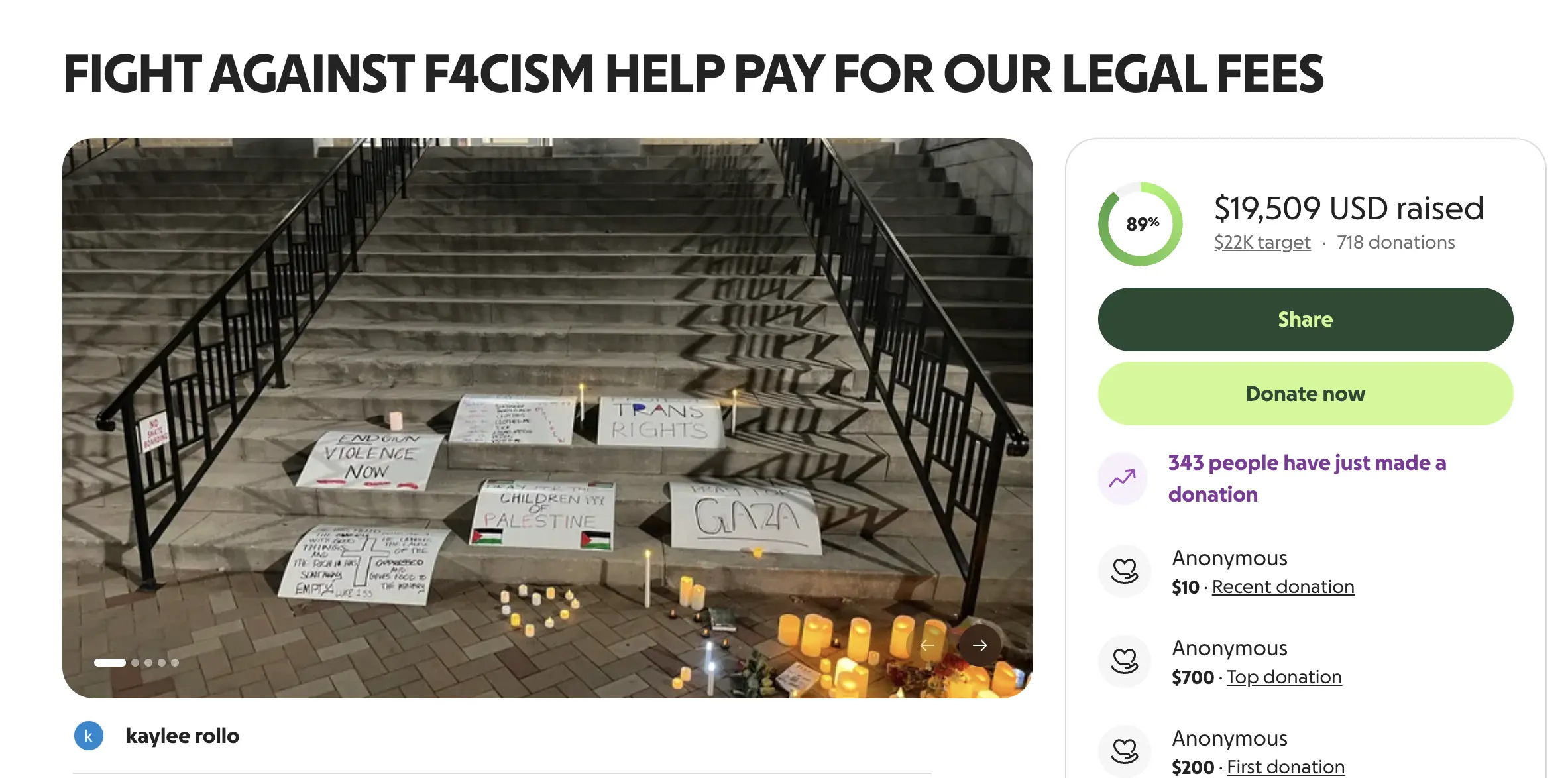 The Rollos have since launched a GoFundMe titled: “FIGHT AGAINST F4CISM HELP PAY FOR OUR LEGAL FEES” with a goal of $22,000.