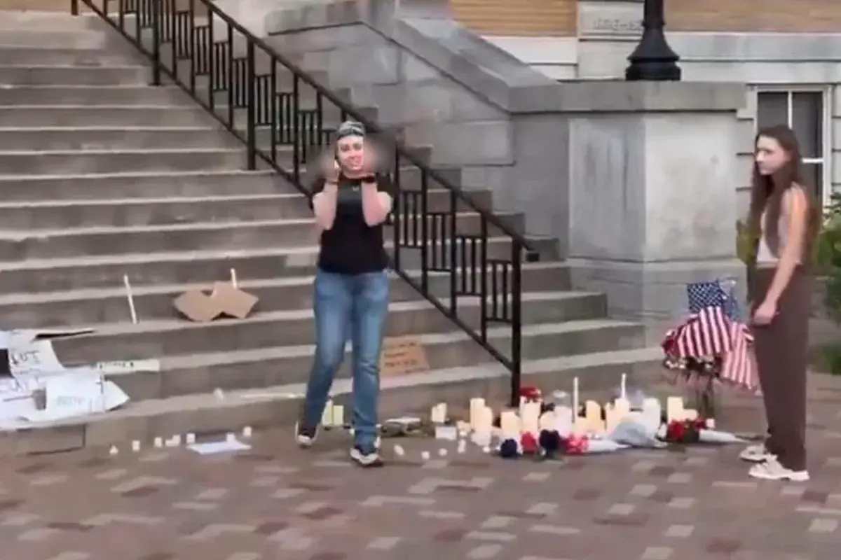 A witness video shared online appeared to show Kerri ripping up signs, kicking over candles, and saying Kirk “lived as he died - promoting violence.”