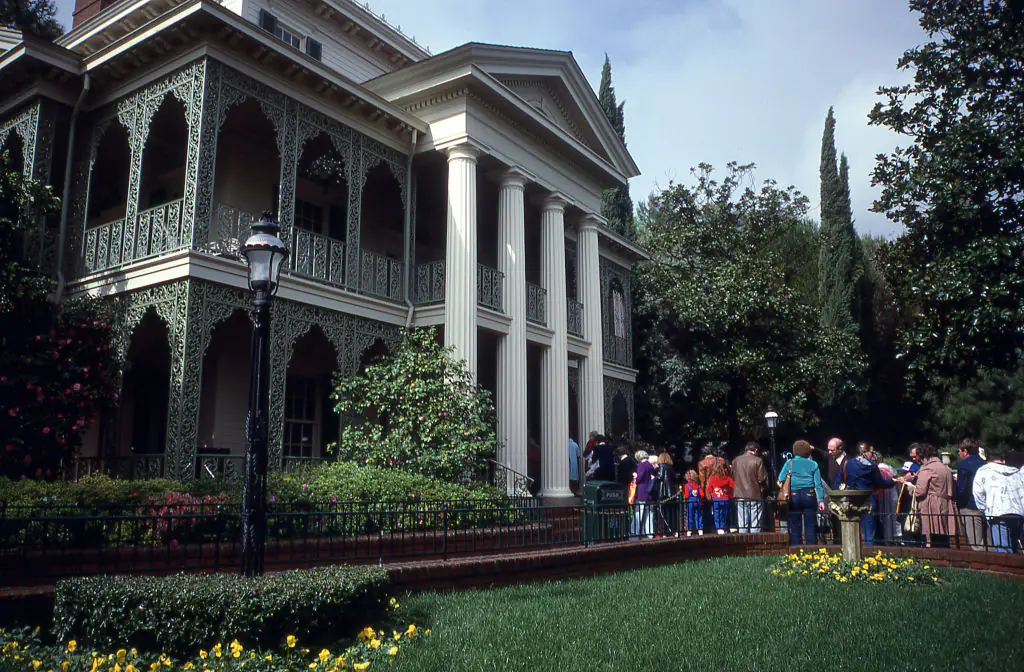 The Haunted Mansion is a slow-moving dark ride in Disneyland’s New Orleans Square, with guests seated in “Doom Buggies” that travel at about one mile per hour through ghostly scenes, seances, and seasonal decorations.