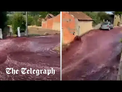 A town in Portugal has been flooded with 2.2 million liters of wine - which has given a brand new meaning to the phrase "paint the town red".