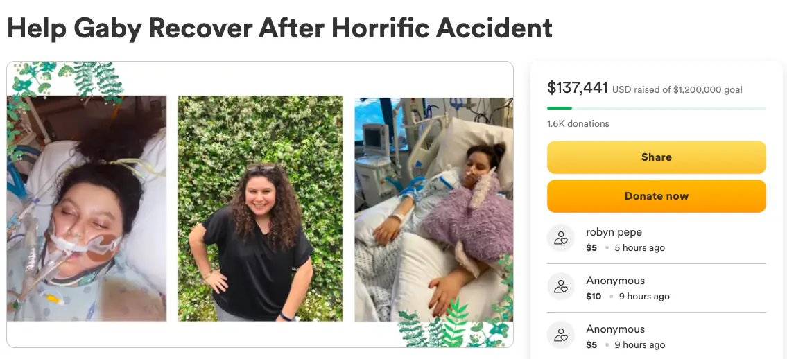 "Gaby was not alone at the end. We were all blessed to be [at] her bedside, crying, praying and sharing Gaby stories. Gaby's life was tragically interrupted 11 months ago but she put up the greatest fight with grace, friends, laughter and the strong belief that she would leave the hospital and come home very soon. Unfortunately, complications robbed Gaby of that ending."