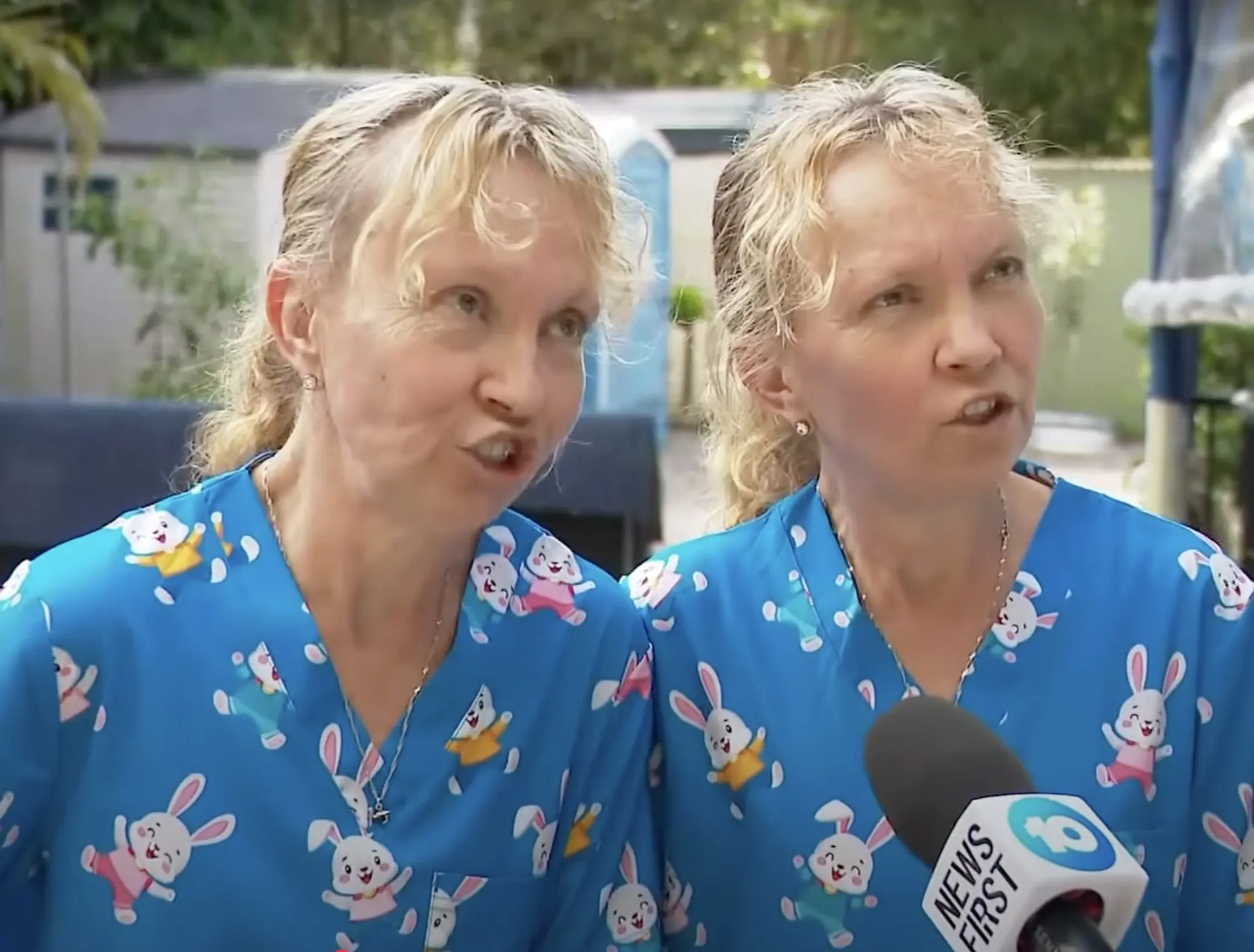 Bridgette and Paula, 47, have been speaking in unison “since day dot.” They even wear matching outfits and have reportedly developed their own twin language.