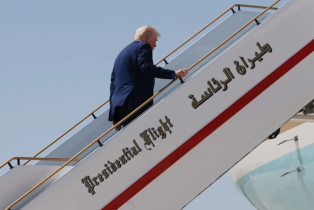 Trump was gripping the handrail as he made his way up to the aircraft, when his left foot caught the edge of a step. He stumbled, caught himself with a quick hand to the rail, and powered through like nothing happened.